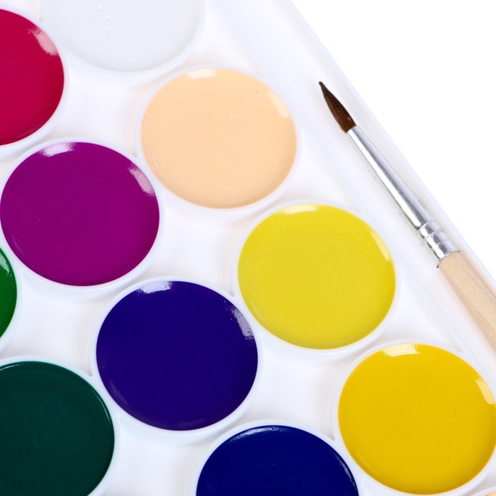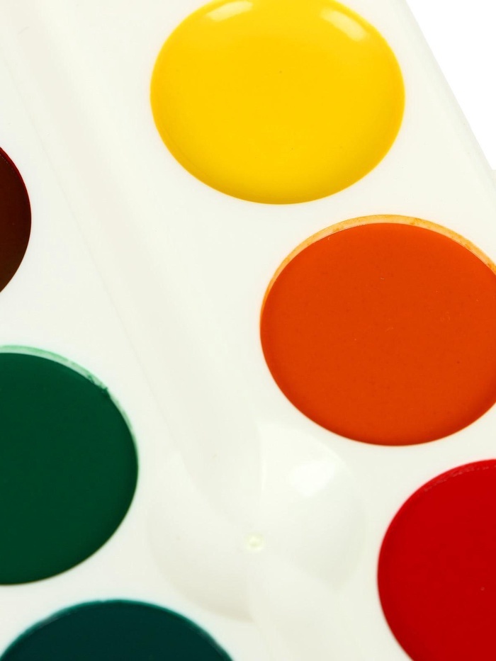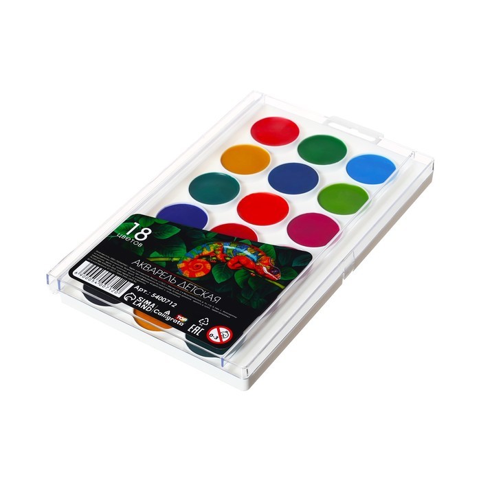 Акварельные краски применяются на уроках изобразительного искусства в школах и детских студиях живописи. Незаменимы для обучения рисованию и развития творческих способностей ребенка. Идеально подходит... Показать описание для занятий рисованием в детском саду, школе и дома. Яркие чистые цвета развивают фантазию и интерес к творчеству. Акварель безопасна для детей. Удобный пластиковый пенал, крышка плотно фиксируется и служит палитрой для смешивания красок. Акварель - водорастворимая краска, поэтому высыхание (пузырьки, трещины) краски в кювете - не считается браком