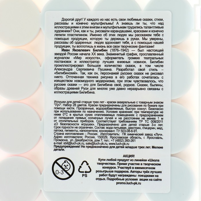 Акварель Луч "Школа" творчества, 28 цветов, без кистиВопросы по товару