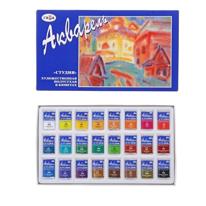 Акварель художественная в кюветах «Гамма. Студия», 24 цвета ? 2.5 мл, 215001Вопросы по товару