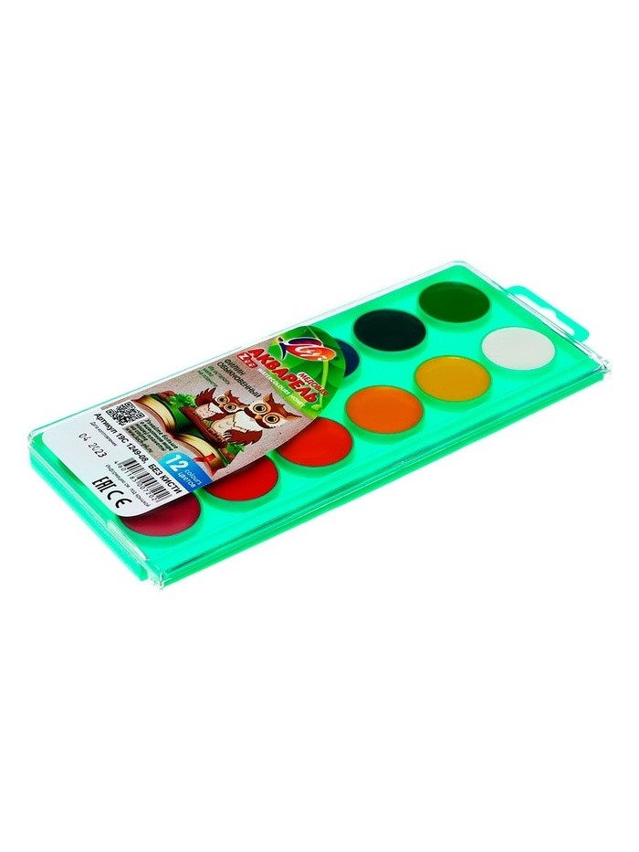Акварельные краски ErichKrause – оптимальный выбор для школьного рюкзака. Новая уникальная формула акварели позволяет краске значительно легче разводиться водой, хорошо удерживаться кистью и равномерн... Показать описаниео ложиться на бумагу, создавая мягкие переходы цвета. По мере высыхания акварельный рисунок приобретает матовый насыщенный оттенок без посторонних бликов и затеков. Краска наиболее точно передает игру цвета и света на рисунке, создает цветовые комбинации. Для работы с акварелью лучший эффект достигается при использовании акварельной бумаги ErichKrause. Характеристики: * Коллекция: “Простоквашино”; * Количество цветов: 12; * Смываемость: easy washable; * На водной основе: да; * УФ-фильтр: нет; * Наличие кисти: нет. Акварель - водорастворимая краска, поэтому высыхание (пузырьки, трещины) краски в кювете - не считается браком