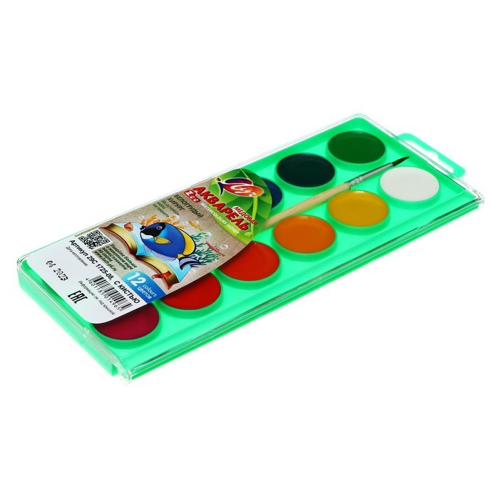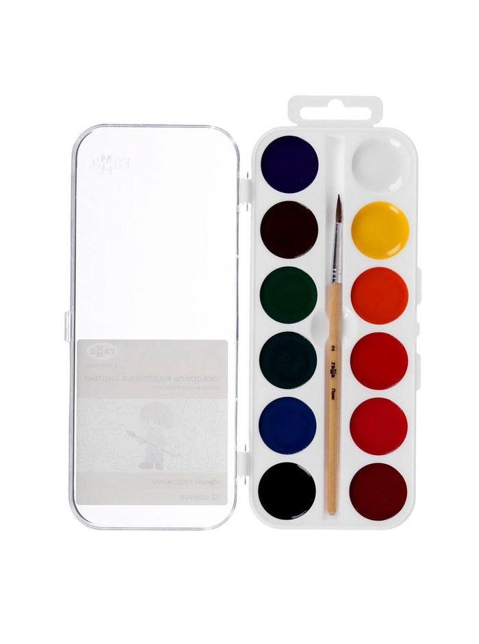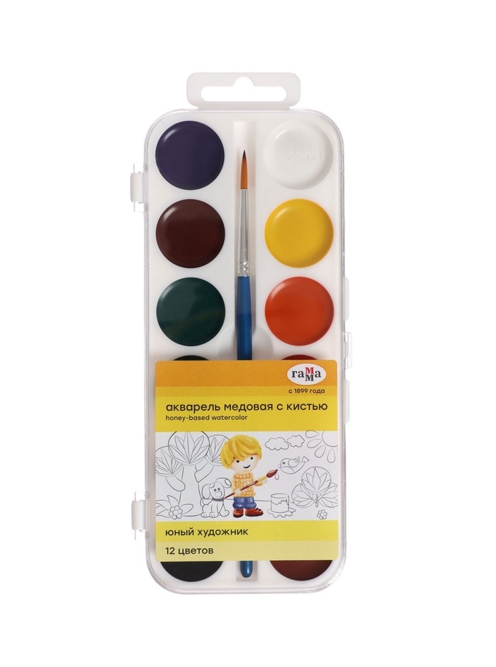 Акварель медовая «Гамма. Юный художник», 12 цветов, с кистью, пластикВопросы по товару