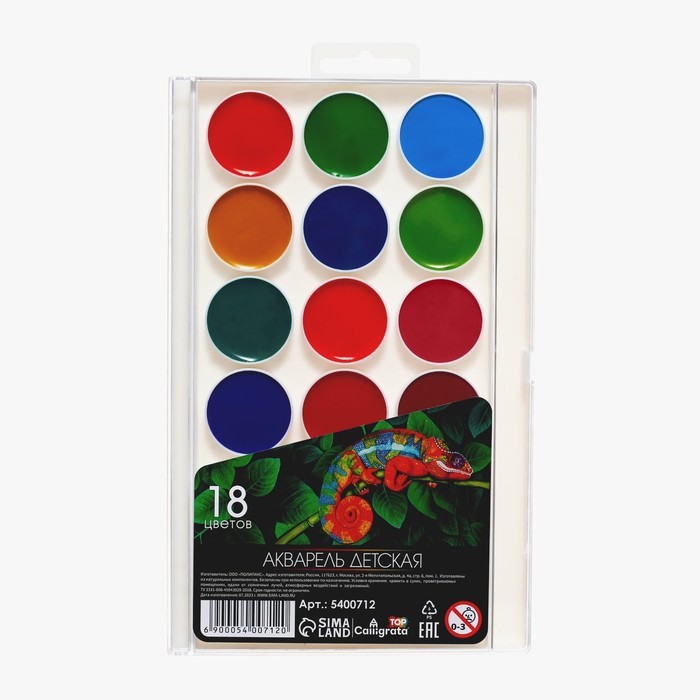 Творчество без границ!Акварель 18 цветов в пластиковом футляре – это идеальный выбор для начинающих и опытных художников. Набор предлагает широкий спектр цветов и удобную упаковку, что делает его неза... Показать описаниеменимым инструментом для творчества. * Пластиковый футляр: Удобный и прочный футляр защищает краски от повреждений и обеспечивает легкий доступ к каждому цвету. Футляр компактен и удобен для хранения и транспортировки. * 18 ярких цветов: Разнообразная палитра из 18 цветов позволяет создавать множество оттенков и экспериментировать с цветовыми сочетаниями. Это отличное решение для развития цветового восприятия и фантазии. * Полутвердая консистенция: Краски имеют полутвердую консистенцию, что обеспечивает легкое нанесение и равномерное покрытие. Они быстро сохнут, что позволяет быстро переходить к следующему этапу рисования. * Безопасность и качество: Акварель соответствует всем стандартам безопасности и не содержит вредных веществ. Это делает её подходящей для использования детьми и взрослыми.