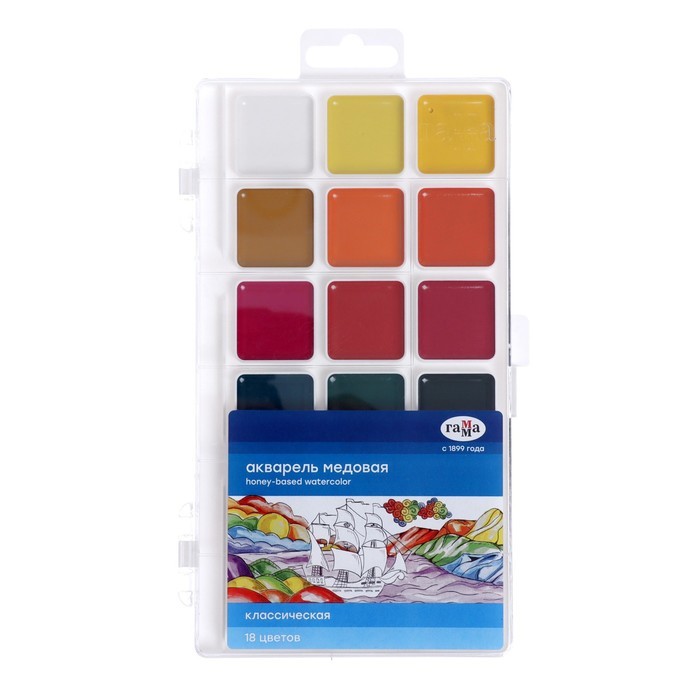 Акварель медовая «Гамма. Классическая», 18 цветов, без кисти, пластик, европодвесВопросы по товару