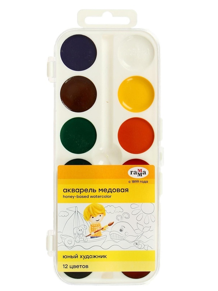 Акварель медовая «Гамма. Юный художник», 12 цветов, без кисти, пластикВопросы по товару