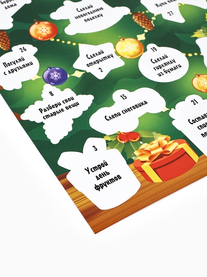 Плакат украсит дом и создаст атмосферу настоящего торжества. Яркие изображения будут радовать вас на протяжении всего праздника. Каждый день, начиная с 11 декабря, выполняйте весёлые задания, и ожидан... Показать описаниеие Нового года пройдёт незаметно! Порадуйте себя и своих родных уникальным аксессуаром!