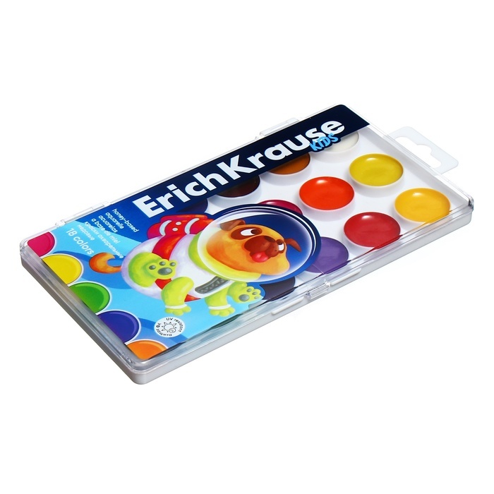 Акварель 18 цветов, ErichKrause Kids Space Animals, медовая, с УФ защитой яркости, пластиковая коробка, европодвесВопросы по товару