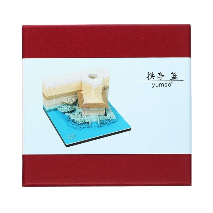 3D блок для заметок "Китайская беседка" — это оригинальный аксессуар для рабочего стола или домашнего использования. Дизайн в формате 3D добавляет нотку креативности и украшает рабочее пространство, а... Показать описание также может стать отличным подарком для коллег или друзей. За счет стильного оформления и функциональности блок не только полезен, но и эстетически приятен. Характеристики: * Размер: 5 х 8 cм; * Количество листов: 160.