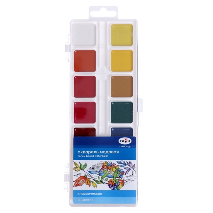 Медовая акварель детей от 7 лет, которые уже чувствуют себя взрослыми и хотят сами выбирать материалы для творчества. Благодаря качественному прозрачному связующему цвета акварели яркие, чистые и насы... Показать описаниещенные. Краски расположены на одной подложке, как на палитре настоящего художника. Кисть ГАММА №2 из гривы пони в наборе. Акварель - водорастворимая краска, поэтому высыхание (пузырьки, трещины) краски в кювете - не считается браком