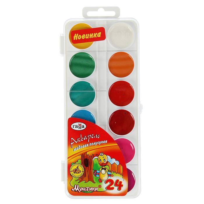 Акварель 24 цвета, «Гамма» «Мультики», без кисти, в пластиковой коробкеВопросы по товару