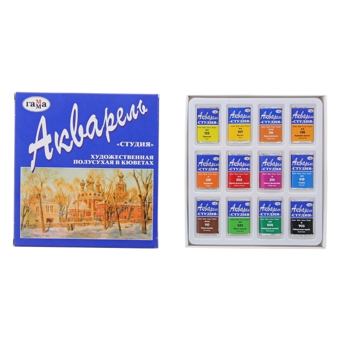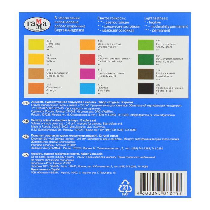 Акварель художественная в кюветах «Гамма. Студия», 12 цветов ? 2.5 мл, 215002Вопросы по товару
