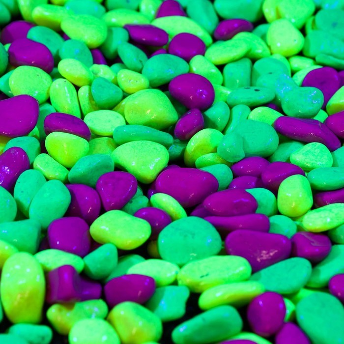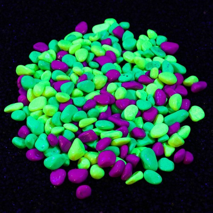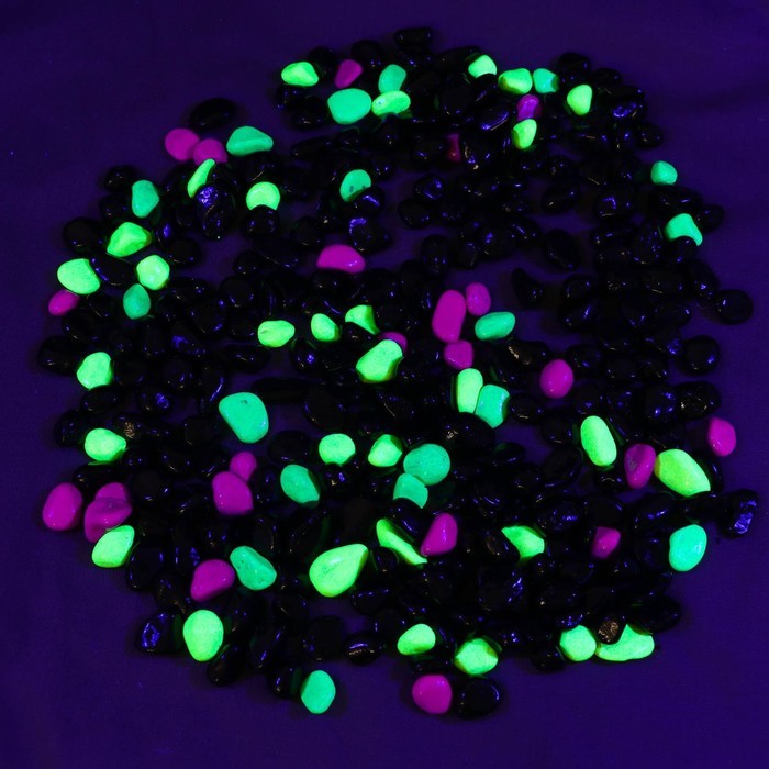 Галька флуоресцентная микс: черный, лимонный, зеленый, пурпурный, 800 г фр.8-12 ммВопросы по товару
