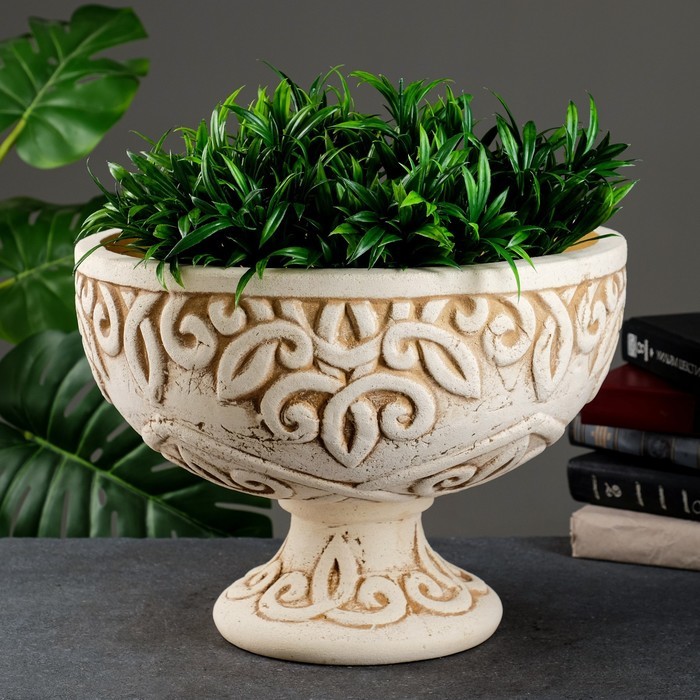 Вазон для цветов «Арабское», 1.3 л, 31?20?25 см, гипс, бежевыйВопросы по товару