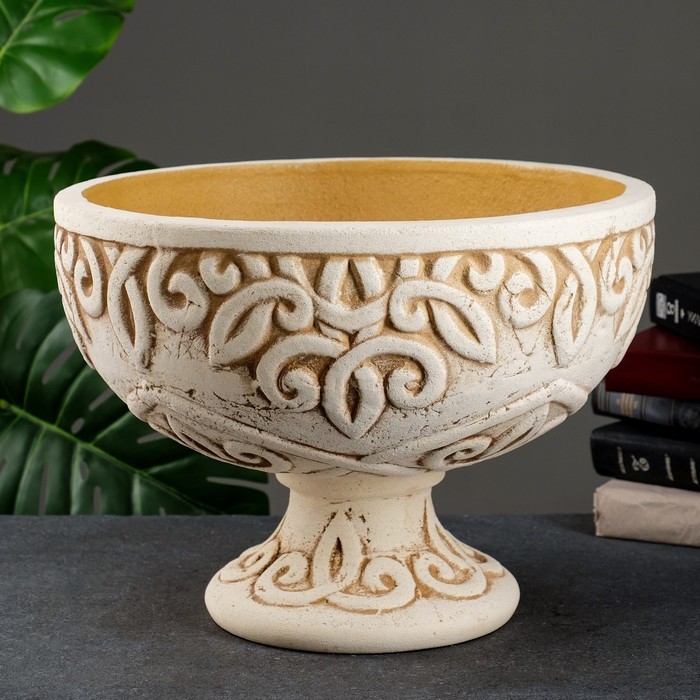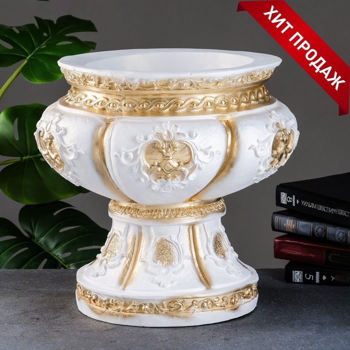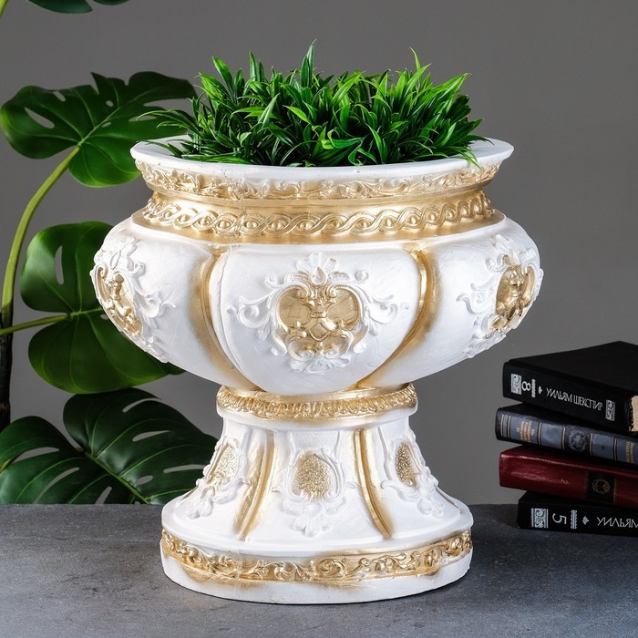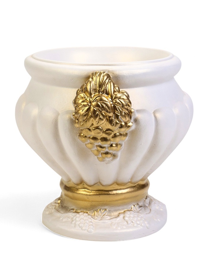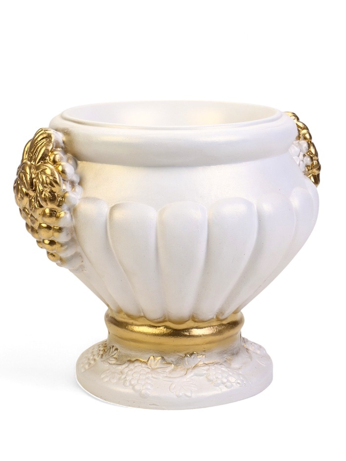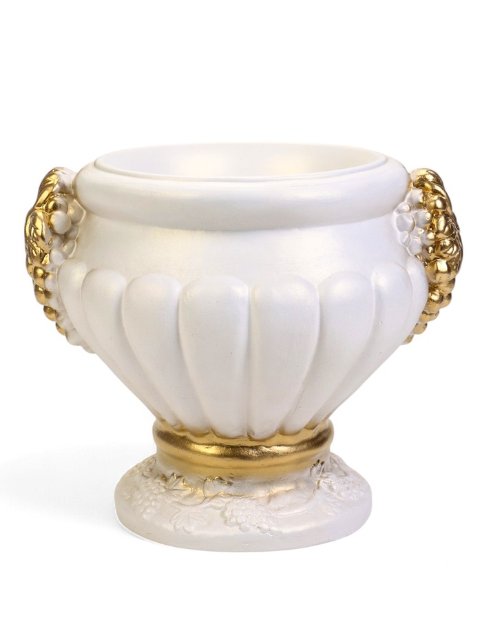 Вазон для цветов «Чаша. Виноградная лоза», 3.5 л, 32?29?29 см, гипс, белый, золотистыйВопросы по товару