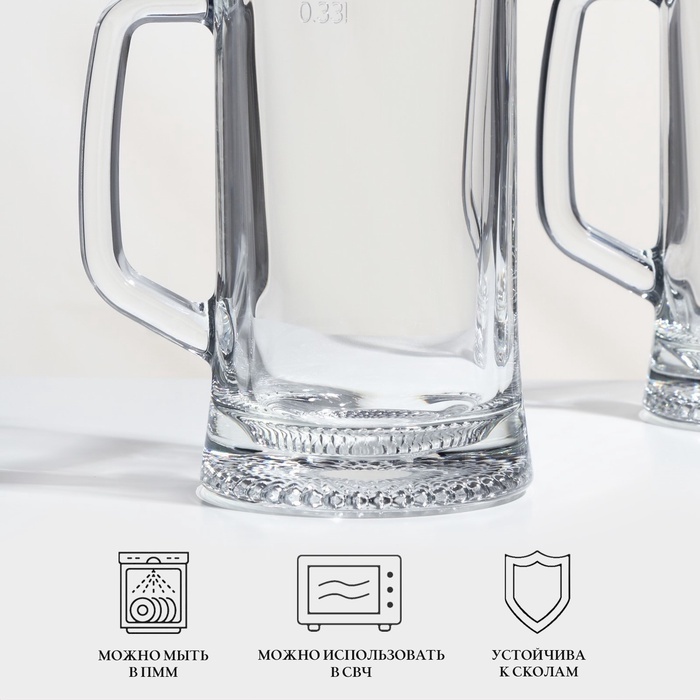 Наслаждайтесь вкусом любимого пива с нашим набором из двух удобных кружек. Объем 330 мл идеален для классической порции, а прочное стекло гарантирует долговечность. Преимущества набора: * Прочное стек... Показать описаниело. Кружки устойчивы к повреждениям и долговечны. * Удобный объем. 330 мл – классический объем для кружки пива. * Универсальный дизайн. Подходят для разных сортов пива. * Легкость в уходе. Кружки легко моются, подходят для посудомоечной машины. * Выгодная цена. Получите две качественные кружки по выгодной цене. Дополнительно Можно мыть в посудомечной машине без использования абразивных моющих средств.