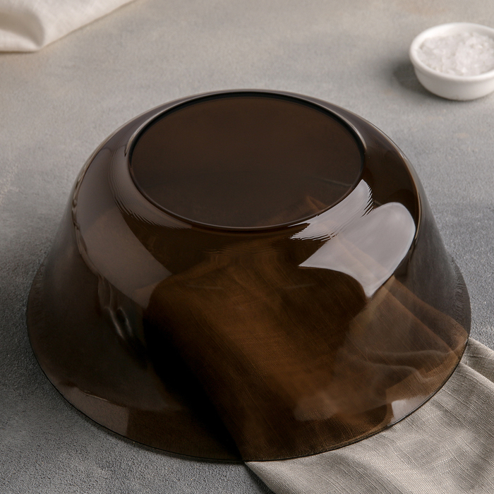Глубокий стеклянный салатник коричневого цвета объёмом 2,5 литра подойдёт для подачи и приготовления больших порций салатов, супов и гарниров. Универсальная форма и размер делают его удобным для семей... Показать описаниеных обедов и праздничных застолий. Материал выдерживает высокие температуры, что расширяет способы применения — от разогрева в микроволновой печи до подачи горячих блюд. Преимущества: * Закалённое стекло: прочное и термостойкое, сохраняет целостность при резких перепадах температуры и механических воздействиях. * Объём 2,5 л и диаметр 24 см: достаточно вместительная для подачи на несколько человек или приготовления салатов и горячих блюд. * Гладкая поверхность и круглая форма: простой дизайн не отвлекает от наполнения и легко сочетается с разной посудой. * Удобство ухода: можно мыть в посудомоечной машине, стекло не впитывает запахи и сохраняет прозрачность. Используйте миску для сервировки, приготовления и хранения блюд с удобством и без лишних хлопот. Дополнительно Рекомендации по уходу: Можно мыть в посудомоечной машине и использовать в СВЧ-печи.