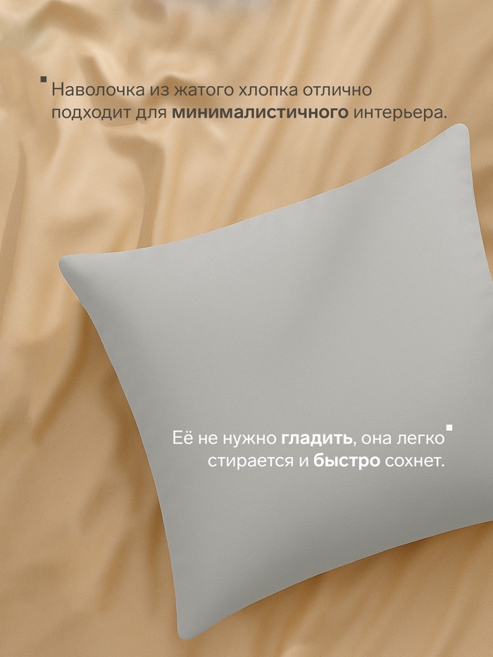 Наволочка «Этель», 70?70 см, серая, бязь, хлопок 100%Наволочка «Этель», 70?70 см, серая, бязь, хлопок 100%