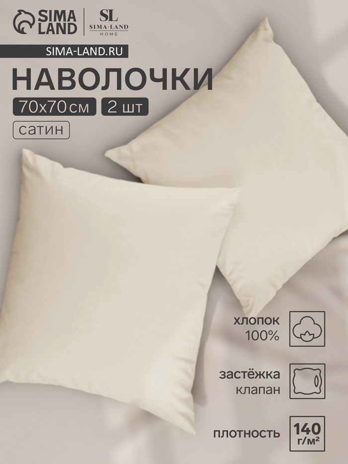 Комплект наволочек SL Home Beige, 70?70+3 см, 2 шт., сатин, хлопок 100%Комплект наволочек SL Home Beige, 70?70+3 см, 2 шт., сатин, хлопок 100%Комплект наволочек SL Home Beige, 70?70+3 см, 2 шт., сатин, хлопок 100%