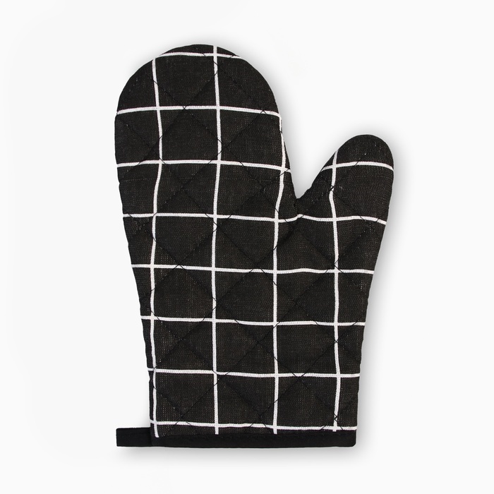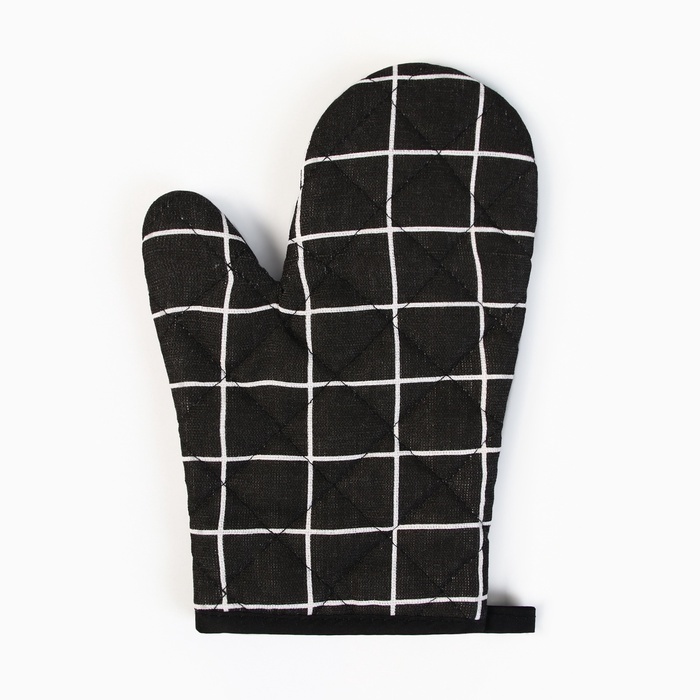 Варежка Доляна «Клетка», чёрная, 26?16 см, 100% п/э