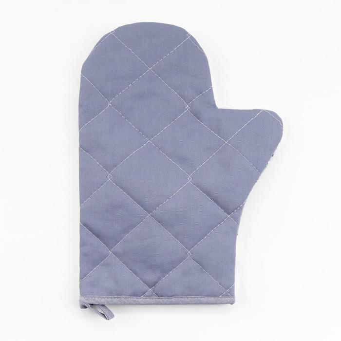 Варежка-прихватка «Доляна. Полоса», серый/синий, 28?17 см, 50% п/э, 50% хлопок