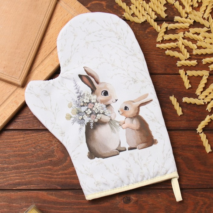 Варежка-прихватка «Доляна. Зайчата», 20?28 см, 35% хлопок, 65% п/э, ватин 250 г/м?