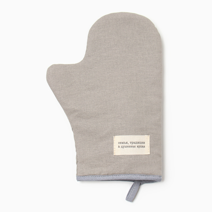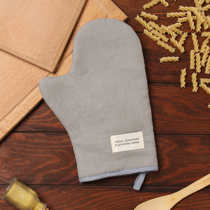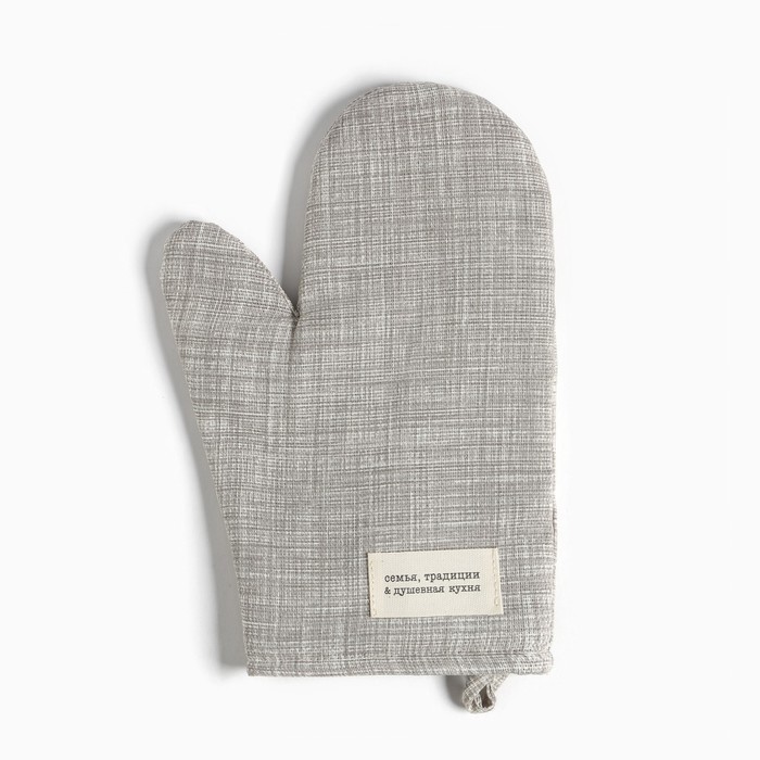 Варежка-прихватка «Доляна. Душевная кухня», серый, 20?28 см, рогожка, 100% хлопок