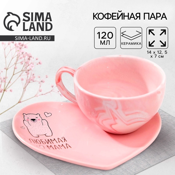 Кофейная пара «Любимая мама»: кружка 120 мл, блюдцеВопросы по товару