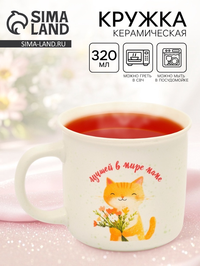 Керамическая кружка для мамы — 320 мл тепла и заботы Нежная кружка, созданная специально для самых дорогих — наших мам. Компактные 320 мл идеально подойдут для её любимого утреннего чая или вечернего ... Показать описаниекакао. Каждый глоток будет напоминать о вашей любви и внимании. Особенности, которые оценят мамы: * Удобный размер 320 мл — достаточно для любимого напитка, но не тяжело. * Тёплая керамика — долго сохраняет тепло и уют. * Утончённый дизайн — элегантность в каждой детали. * Комфортная ручка — специально продумана для женской руки. * Безопасные материалы — только качественная керамика. Подарите маме кружку, которая будет согревать её каждый день. Ведь она заслуживает самых тёплых моментов!