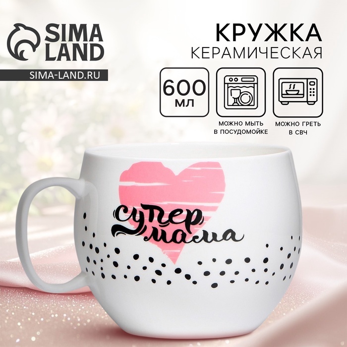 Керамическая кружка «Супер мама» объёмом 600 мл станет прекрасным дополнением вашего дома и отличным подарком для ваших близких. Преимущества керамической кружки: Экологичность: кружка изготовлена из ... Показать описаниевысококачественной керамики, которая не содержит вредных веществ и безопасна для здоровья. Прочность: керамика обладает высокой прочностью и стойкостью к царапинам, поэтому кружка прослужит вам долгое время. Сохранение температуры: керамика хорошо сохраняет тепло, поэтому напиток в кружке будет горячим долгое время. Оригинальный дизайн: кружка украшена оригинальным дизайном, который впишется в любой интерьер. Универсальность: кружка подходит как для горячих, так и для холодных напитков, её можно использовать для подачи чая, кофе, молока или какао. Отличный подарок: керамическая кружка станет отличным подарком для друзей и родственников, которые ценят уют и комфорт.