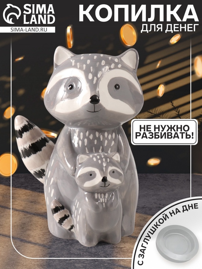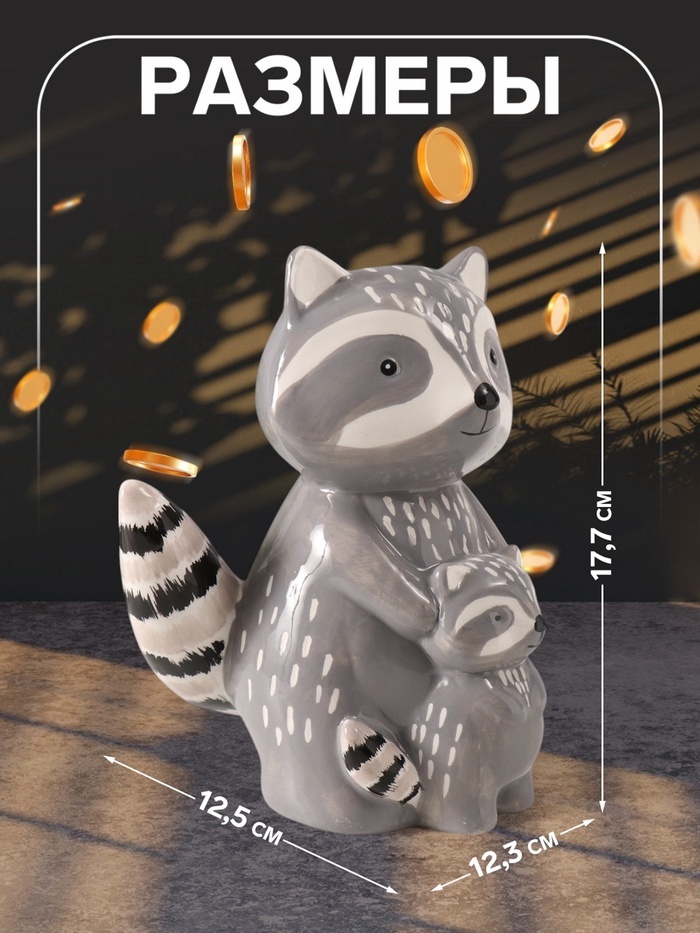 Копилка для денег «Енот с малышом», керамика, 12.3?12.5?17.7 смВопросы по товару