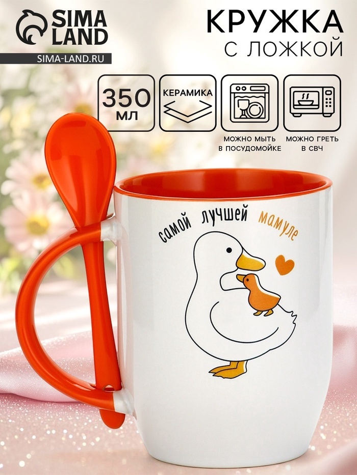 Кружка с ложкой керамическая «Самой лучшей мамуле», 350 млВопросы по товару