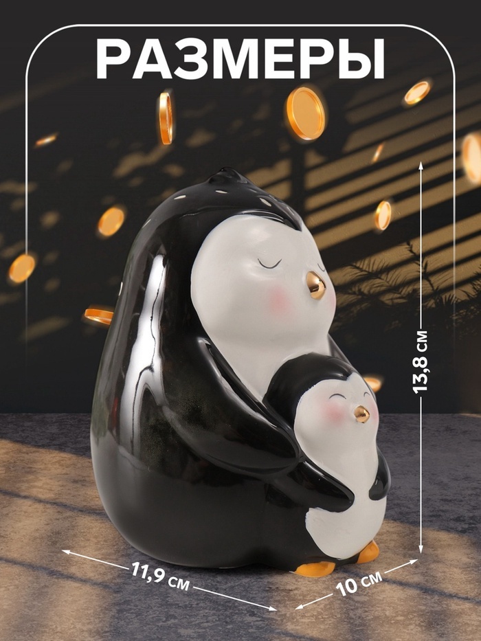 Копилка для денег «Пингвин с малышом», керамика, 10?11.9?13.8 смВопросы по товару