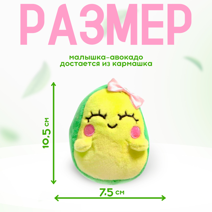 Мягкое авокадо с малышом — это очаровательный аксессуар, который станет идеальным подарком для всей семьи. Его яркий зелёный цвет и милый дизайн добавляют уюта в любое пространство, будь то дом, детск... Показать описаниеая комната или рабочее место. Особенности * Изделие выполнено из мягкого лавсана и наполнено полипропиленом, что делает его безопасным и приятным на ощупь. * Спереди у «мамы-авокадо» есть кармашек, где спрятался её маленький «ребёнок», добавляя игривости и уникальности образу. * Компактный размер делает его удобным для использования как подушки, элемента декора или подарка на любой праздник. * Яркий дизайн привлекает внимание и создаёт позитивную атмосферу, особенно для детей и взрослых. Добавьте уюта в каждый день Это авокадо с малышом помогает создавать атмосферу тепла и веселья в доме, машине или на рабочем месте. Его мягкая текстура и дружелюбный образ делают его идеальным компаньоном для объятий, а удобный размер позволяет всегда иметь его под рукой. Этот персонаж может стать символическим подарком для близких, особенно на такие праздники, как день рождения или Новый год. Подарите его, чтобы порадовать кого-то трогательным жестом. Как ухаживать за мягкой игрушкой * Для очистки поверхности используйте мягкую щётку или протирайте её влажной тканью. * При необходимости изделие можно постирать в деликатном режиме при температуре 30–40 °C. * После стирки просушите игрушку вдали от нагревательных приборов и прямых солнечных лучей. * Не используйте агрессивные моющие средства, чтобы избежать повреждения материала. Подарите это очаровательное авокадо с малышом своим близким или используйте его как элемент декора — и оно станет маленьким, но важным источником тепла и радости в вашей жизни. Дополнительно Размер мамы авокадо — 18 ? 24 см. Размер малыша авокадо — 7.5 ? 10.5 см.