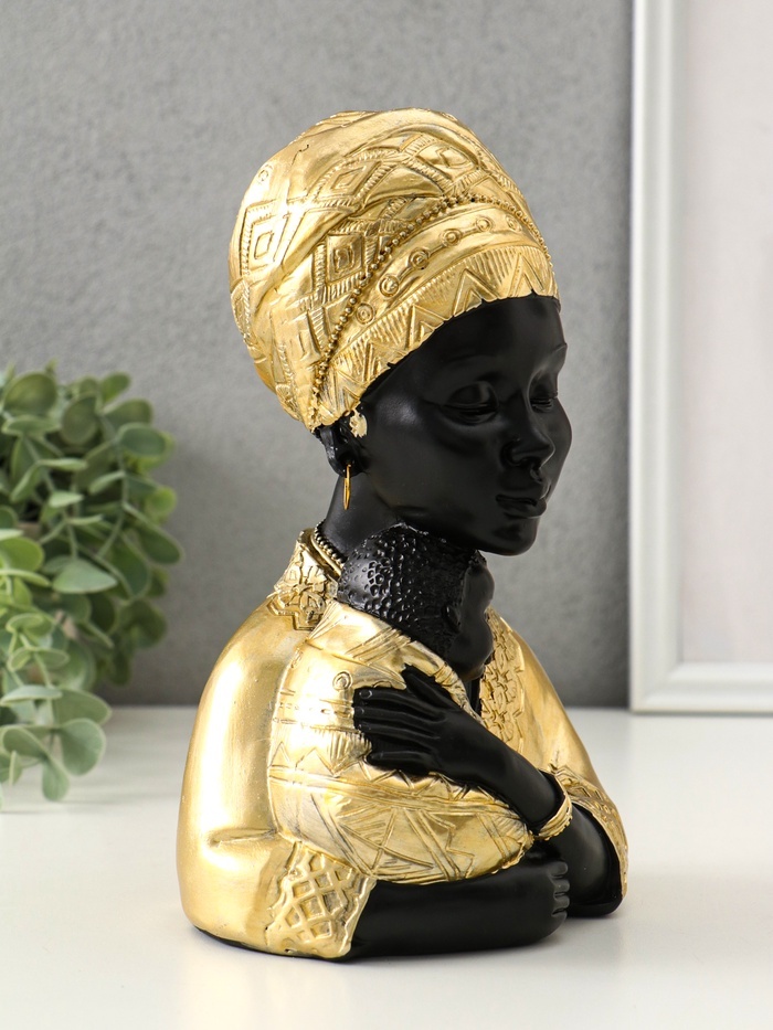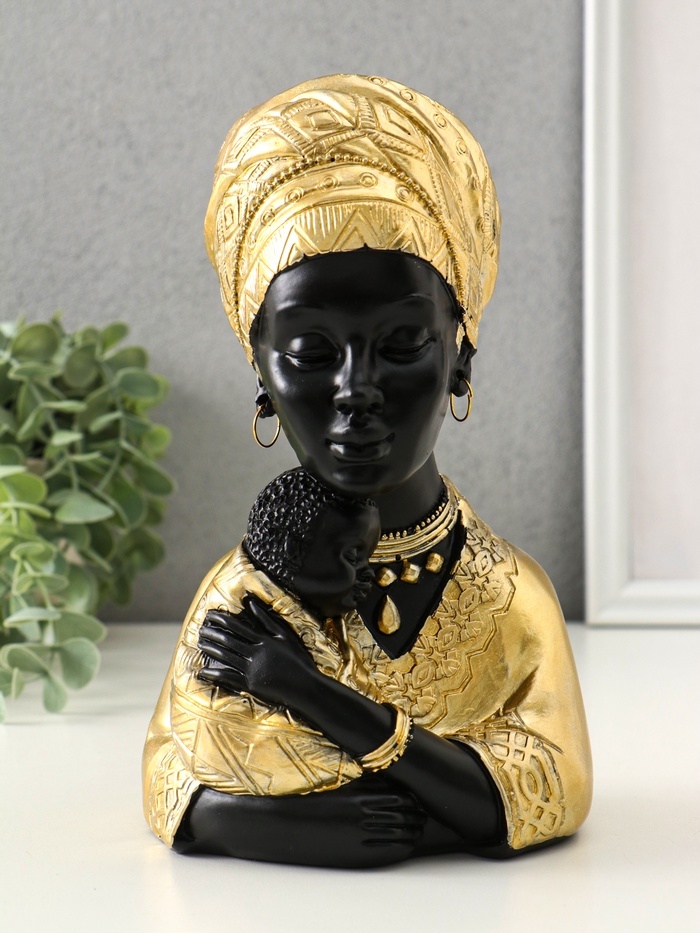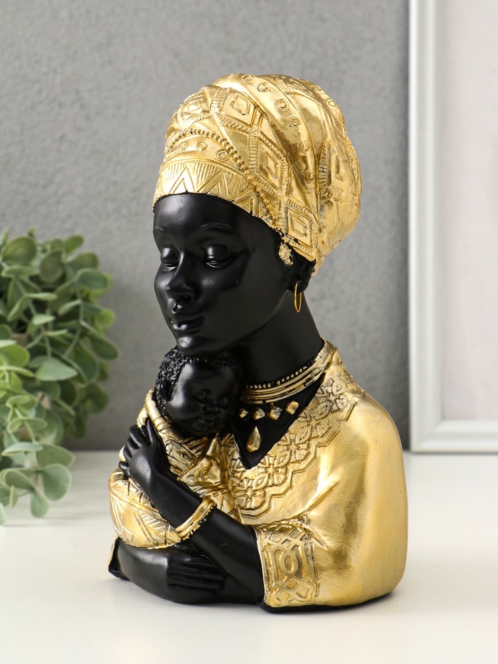 Бюст полистоун «Африка - мать и дитя», чёрный с золотом, 12.5?10?21.5 смВопросы по товару