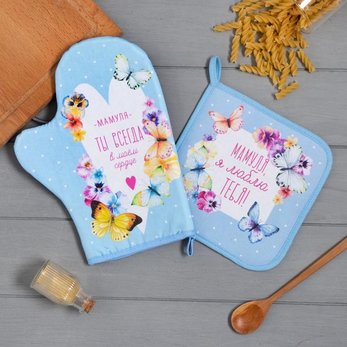 Набор кухонный «Мамуля» варежка-прихватка 20?28 см, прихватка 19?19 см,100% хлВопросы по товару