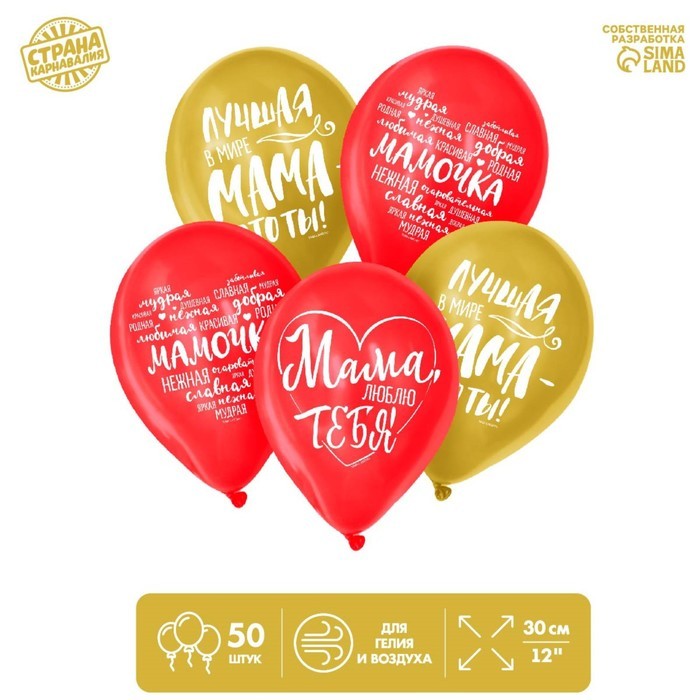 Воздушные шары латексные 12" «Мама, Пожелания», 50 шт.Вопросы по товару