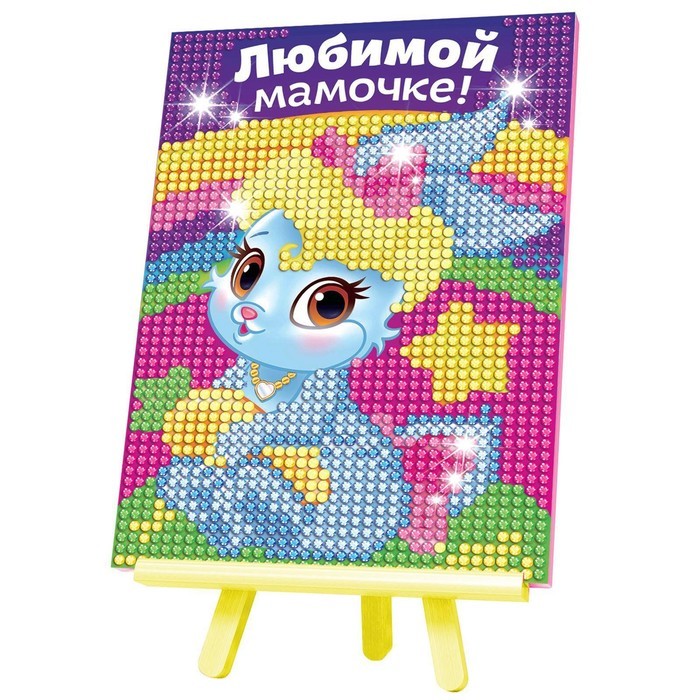 Алмазная мозаика с частичным заполнением на подставке для детей «Любимой мамочке!», 10?15 смВопросы по товару