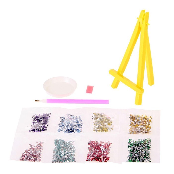 Алмазная мозаика — это увлекательный вид творчества, который понравится любому малышу! Ребёнку предстоит разложить кристаллики карандашом по пронумерованной схеме, заполнив всё полотно. Основа с клеев... Показать описаниеым покрытием будет надёжно удерживать стразы. На ней уже обозначены необходимые оттенки, а цветовая таблица расположена на упаковке. В наборе есть небольшой мольберт: с ним готовое творение можно расположить на полке или столе без дополнительных креплений. В таком интересном оформлении сверкающая картина будет выглядеть как предмет искусства. Как создать мозаику 1. Для начала откройте небольшой участок схемы, приподняв и отогнув защитную плёнку. Не открывайте всю схему сразу. 2. Из пакетика с номером, который соответствует схеме, отсыпьте в ёмкость немного стразов. 3. Возьмите специальный карандаш, окуните кончик в клеевую подушечку (розовый квадратик), возьмите страз. Таким образом заполните рисунок. Немного терпения, и сверкающая картина готова! Комплектация * картина-основа; * стразы; * мольберт; * карандаш-стилус; * ёмкость для стразов; * клеевая подушечка.