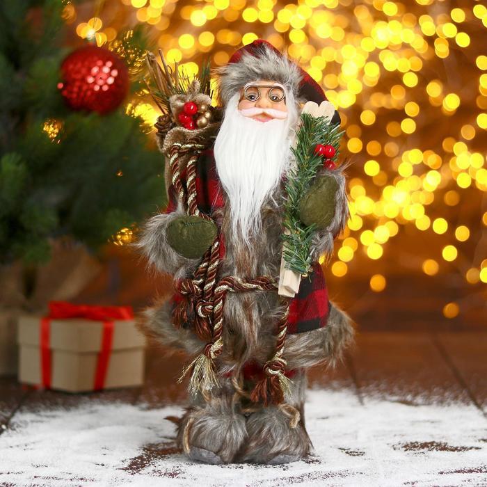Дед Мороз под ёлку «Зимнее волшебство. В красной шубке в клетку с подарками» двигается, 40 см Вопросы по товару