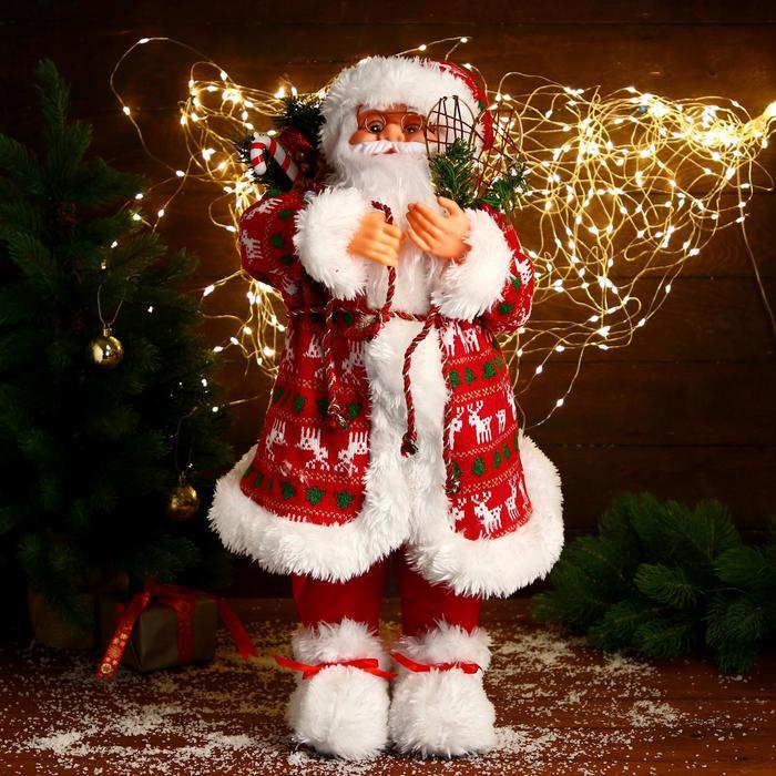 Дед Мороз под ёлку «Зимнее волшебство. В красной шубке с оленями», 60 см Вопросы по товару