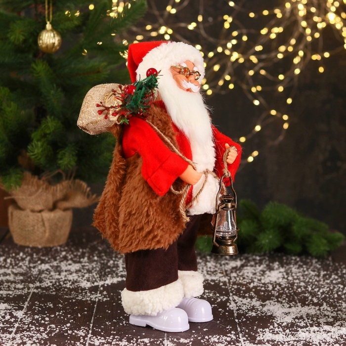 Дед Мороз под ёлку «Зимнее волшебство. В красном тулупе, с фонариком» двигается, ботинки светятся, 35 см Вопросы по товару