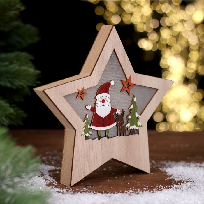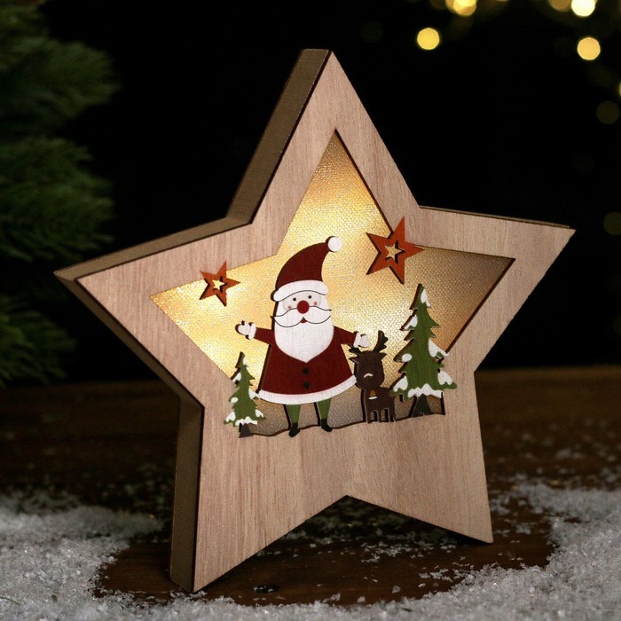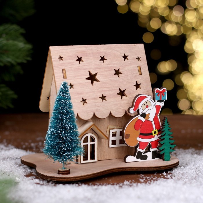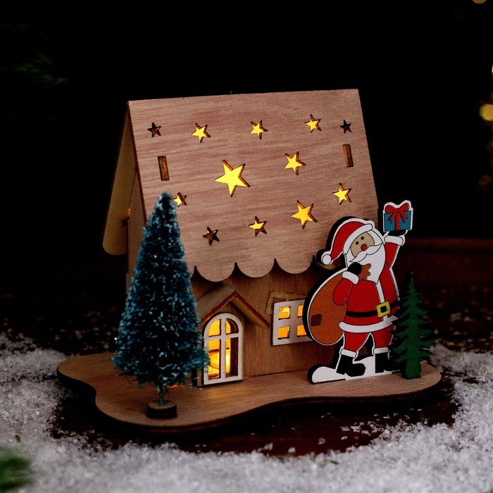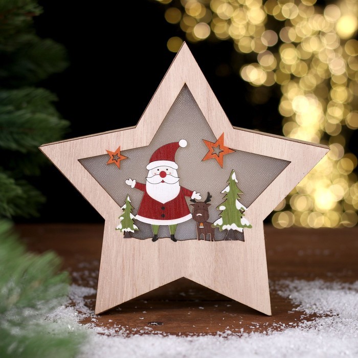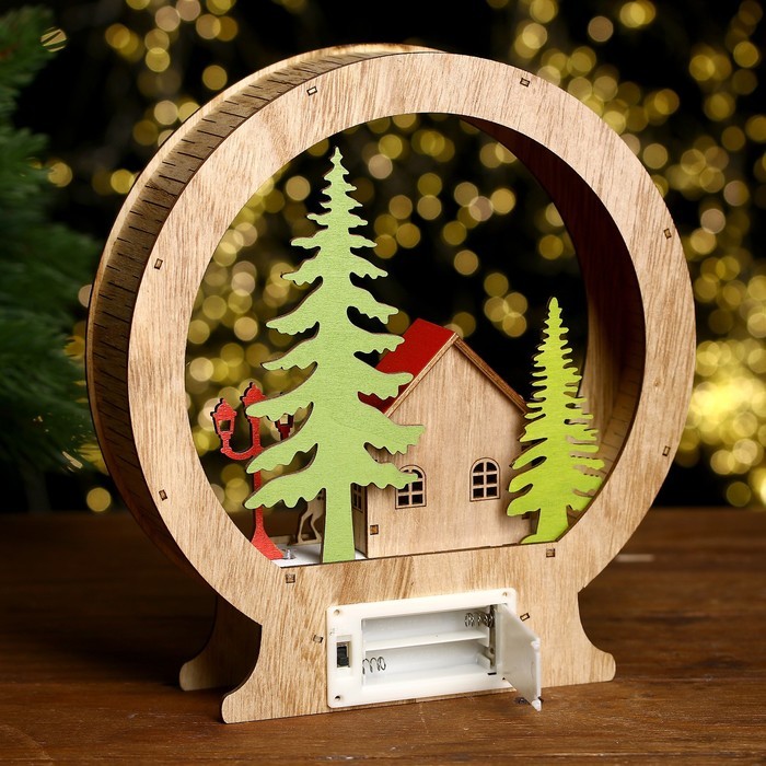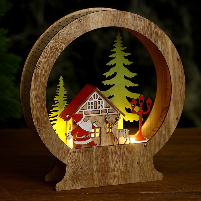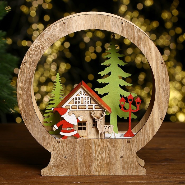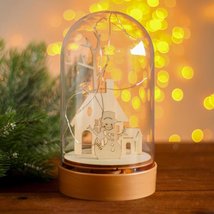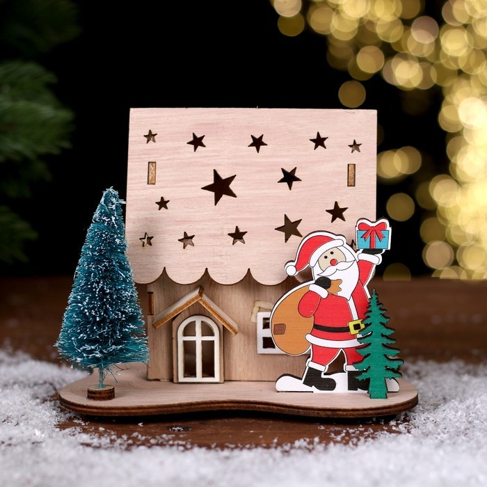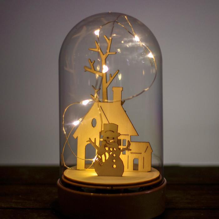 Светящийся декор отлично впишется в домашний интерьер и наполнит ваше жилище уютом и новогодней атмосферой. Особенности изделия: * Капсула выполнена из пластика, а значит ее сложно разбить или поранит... Показать описаниеься. * Основа выполнена из экологически чистого материала - дерева, поэтому крепкая и долговечная. * В светильник встроено 5 светодиодов, которые работают от батареек. * Размер светильника - 5,5 см х 5,5 см х 8,5 см.