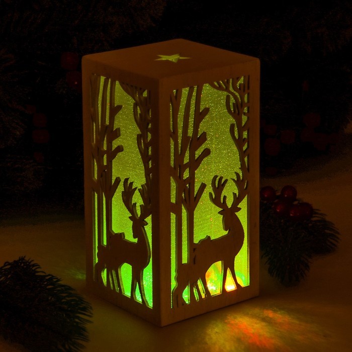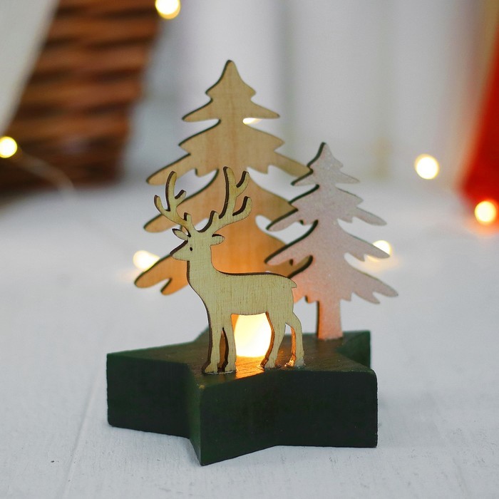 Декор с подсветкой «Ёлочки и олень с колокольчиком», 13.5?5?22 см, зелёный
