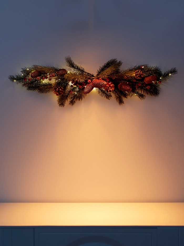 Декор настенный «Еловая ветвь с шишками», 70?27 см, 30LED, от батареек CR2032?2, свечение тёплое белое