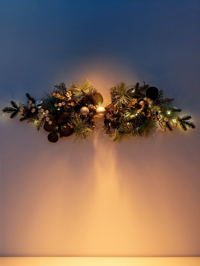 Настенный декор в виде еловой ветви с шишками длиной 70 см и шириной 27 см станет изысканным украшением вашего интерьера в праздничный сезон. Композиция из дерева и пластика отличается натуральной тек... Показать описаниестурой и аккуратной детализацией, создавая атмосферу зимней природы прямо у вас дома. 30 светодиодов с тёплым белым свечением равномерно освещают фигуру, наполняя пространство мягким и уютным светом. Универсальный настенный крепёж позволяет легко разместить декор на стене, двери или в любом удобном месте, а питание от двух батареек CR2032 обеспечивает автономную работу без лишних проводов. Постоянный режим свечения гарантирует стабильность и комфортное освещение без мерцания, что особенно важно для создания праздничного настроения. * Натуральный дизайн: сочетание дерева и пластика с детальной прорисовкой шишек и веток создаёт эффект живой хвои. * Яркое и тёплое освещение: 30 светодиодов обеспечивают равномерный мягкий свет, который подчёркивает красоту декора. * Удобство размещения: универсальный настенный монтаж подходит для стен, дверей и других поверхностей. * Автономность: питание от компактных батареек CR2032 позволяет устанавливать декор в любом месте без проводов. * Долговечность: качественные материалы обеспечивают устойчивость к механическим воздействиям и длительный срок службы. Этот светящийся элемент декора станет гармоничным дополнением новогоднего интерьера, создавая атмосферу уюта и праздничного волшебства в вашем доме.