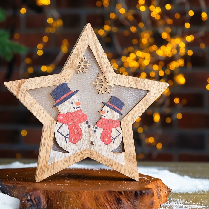 Декор новогодний с подсветкой «Снеговики», 2.3?19.7?19.7 см, свечение желтое Вопросы по товару