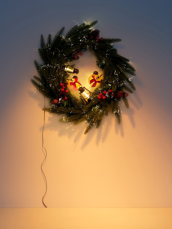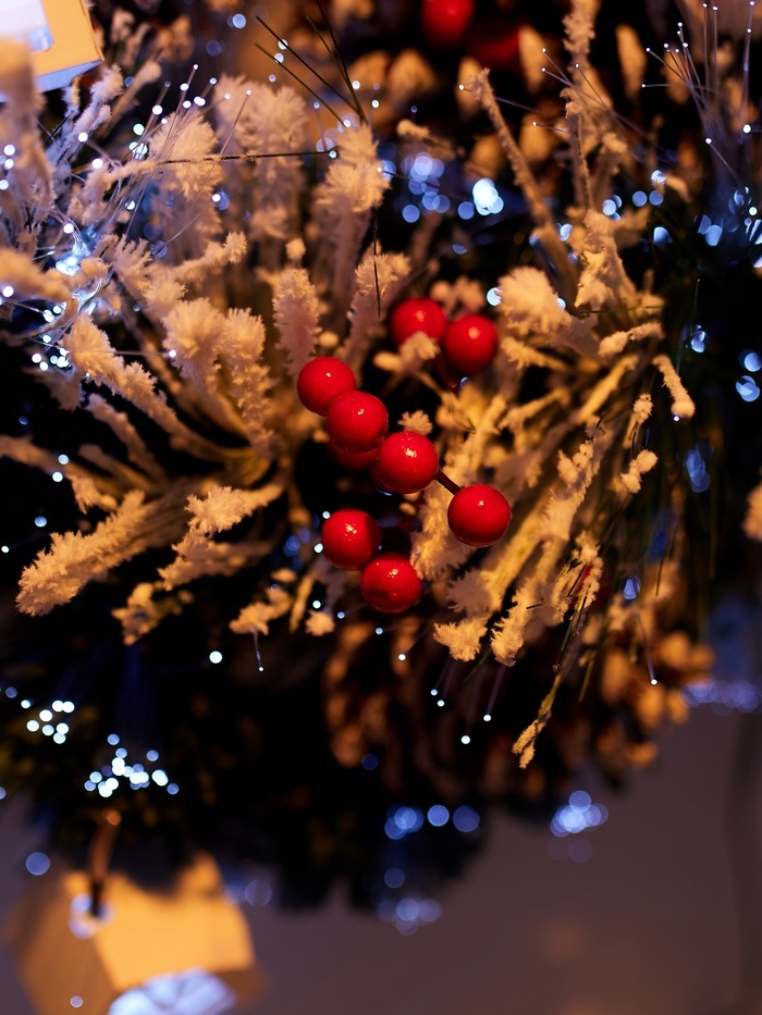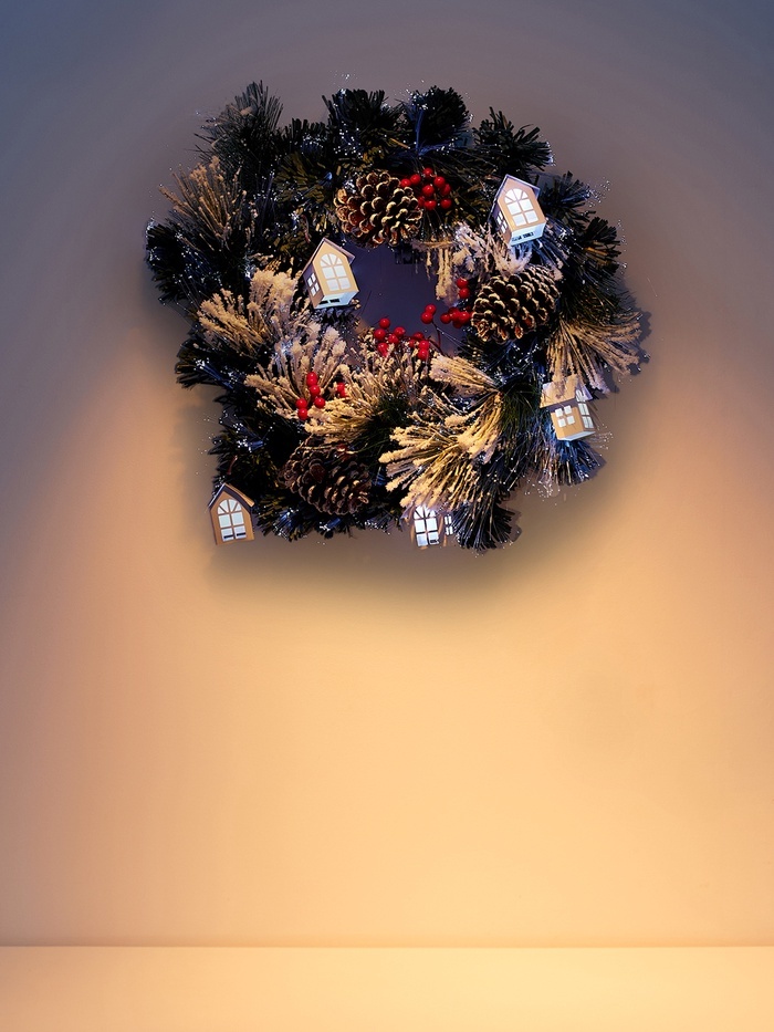 Фиброоптический венок диаметром 50 см создаёт яркую праздничную атмосферу в любом помещении. Восемь режимов подсветки оживляют интерьер, делая декор выразительным и динамичным. Зелёная хвоя и разноцве... Показать описаниетные украшения гармонично дополняют друг друга, создавая ощущение естественного новогоднего венка. Комплектация * Венок декоративный — 1 шт. * Блок питания/контроллер — 1 шт. * Упаковка Дополнительно * Фиброоптическая подсветка: мягкое сияние подчёркивает шишки, ягоды и ёлочные украшения. * Восемь режимов свечения: создают живое и праздничное мерцание. * Разноцветный декор: сочетание шишек, ягод и других деталей делает венок ярким и выразительным. * Отгибающиеся ветки: легко формировать венок под интерьер и размещать на дверях, окнах или стенах. * ПВХ-хвоя: долговечный материал сохраняет форму и насыщенный зелёный цвет на протяжении многих сезонов. * Диаметр 50 см: оптимальный размер для подвешивания на дверь, окно или стену.