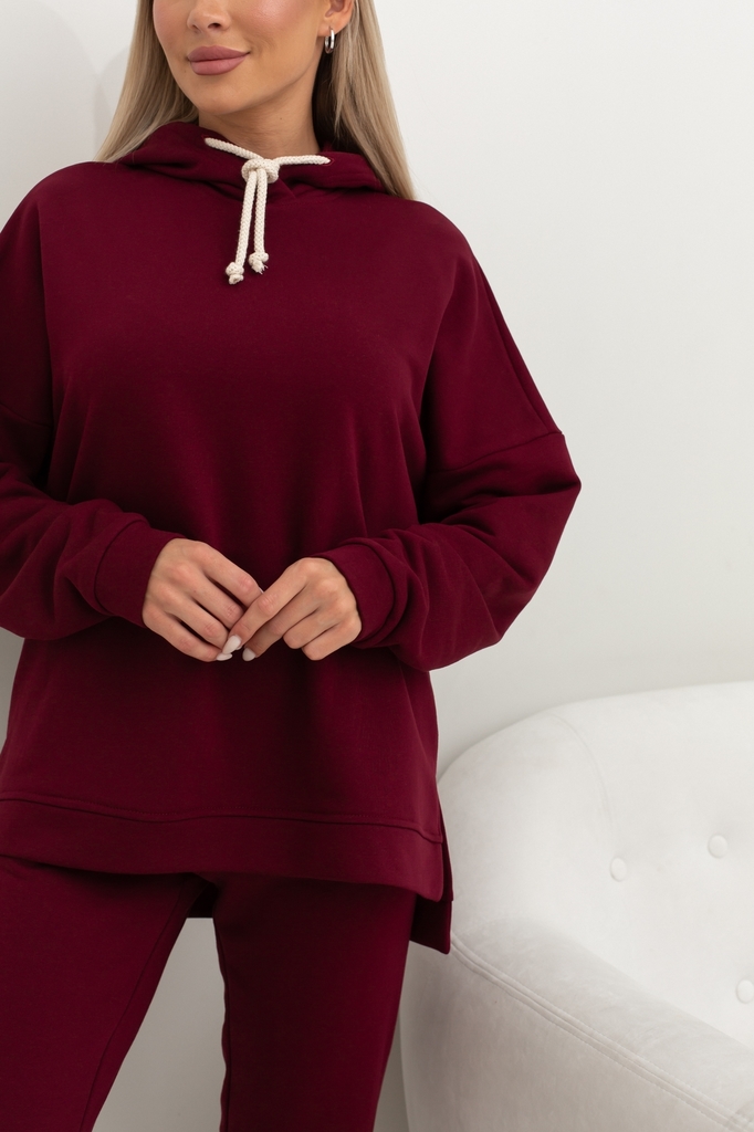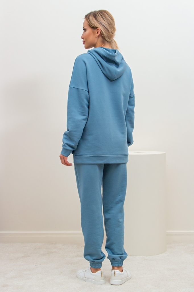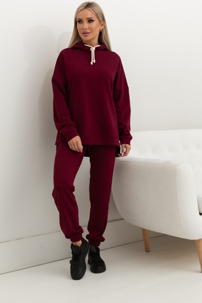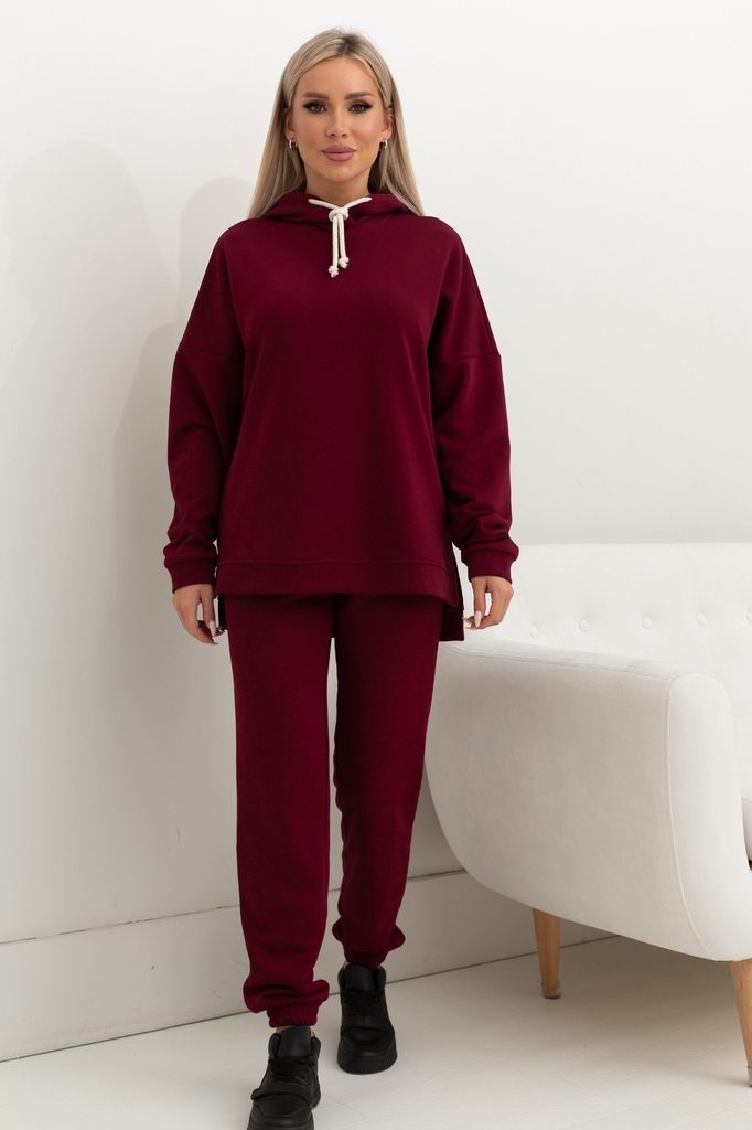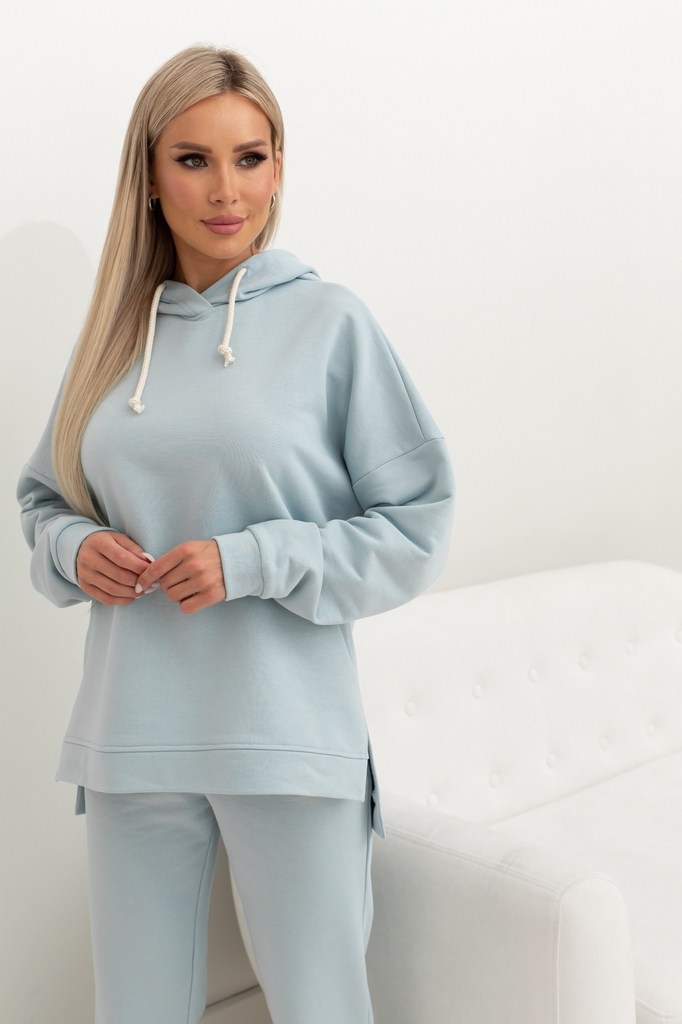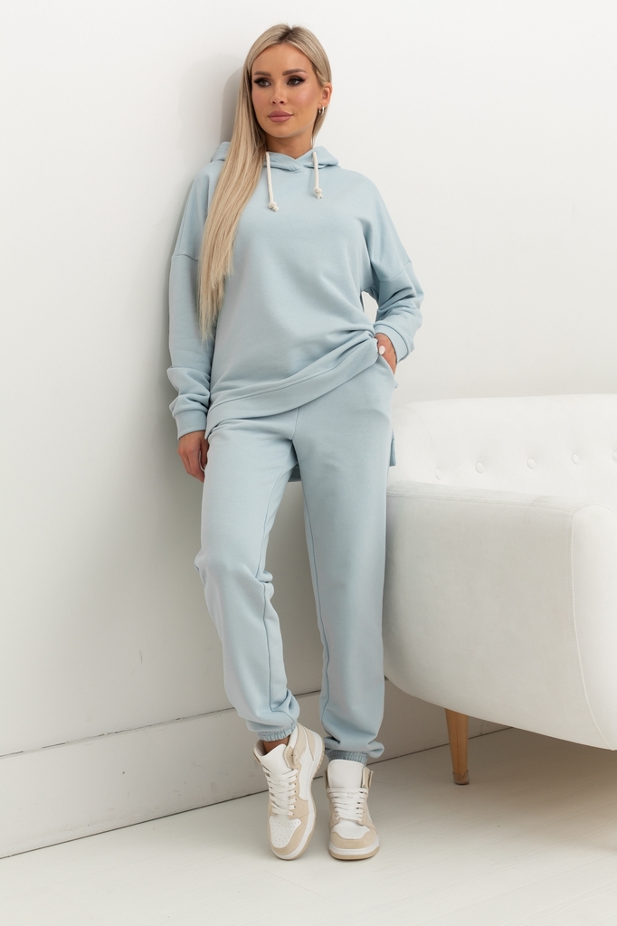 Стильный костюм из теплого трикотажного полотна - футер с начёсом. Состоит из толстовки и брюк. Толстовка свободного кроя со спущенным плечом. Длинный рукав со спущенным плечом, оканчивается... Показать описание притачной манжетой. Модель с капюшоном. Низ ассиметричный, оформление манжетой, по бокам разрезы. Брюки с комфортной посадкой на талии, которую обеспечивает пояс на резинке. Брючины оканчиваются широкими манжетами на резинке. Модель имеет функциональные карманы в боковых швах. Идеальный вариант для спорта и отдыха. Рекомендуемая стирка при t не более 30°. Длина изделия: 44, 46, 48 р - 65 см; 50, 52 р - 67 см Длина рукава от горловины: 44, 46, 48 р - 72 см; 50, 52 р - 74 см ОГ: 42 р - 128 см; 44 р - 130 см; 46 р - 132 см; 48 р - 134 см; 50 р - 136 см; 52 р - 138 см ОТ: 42 р - 106 см; 44 р - 110 см; 46 р - 114 см; 48 р - 120 см; 50 р - 124 см; 52 р - 128 см Длина брюк по боковому шву: 44, 46, 48 р - 99 см; 50, 52 р - 101 см Длина брюк по шаговому шву: 44, 46, 48 р - 73 см; 50, 52 р - 75 см ОТ: 42 р - 70 см; 44 р - 70 см; 46 р - 74 см; 48 р - 78 см; 50 р - 80 см; 52 р - 82 см ОБ: 42 р - 94 см; 44 р - 100 см; 46 р - 104 см; 48 р - 108 см; 50 р - 112 см; 52 р - 116 см Рост фотомодели: 172 см Размер фотомодели: 44 Ткань: Турецкий трикотаж - футер с начёсом