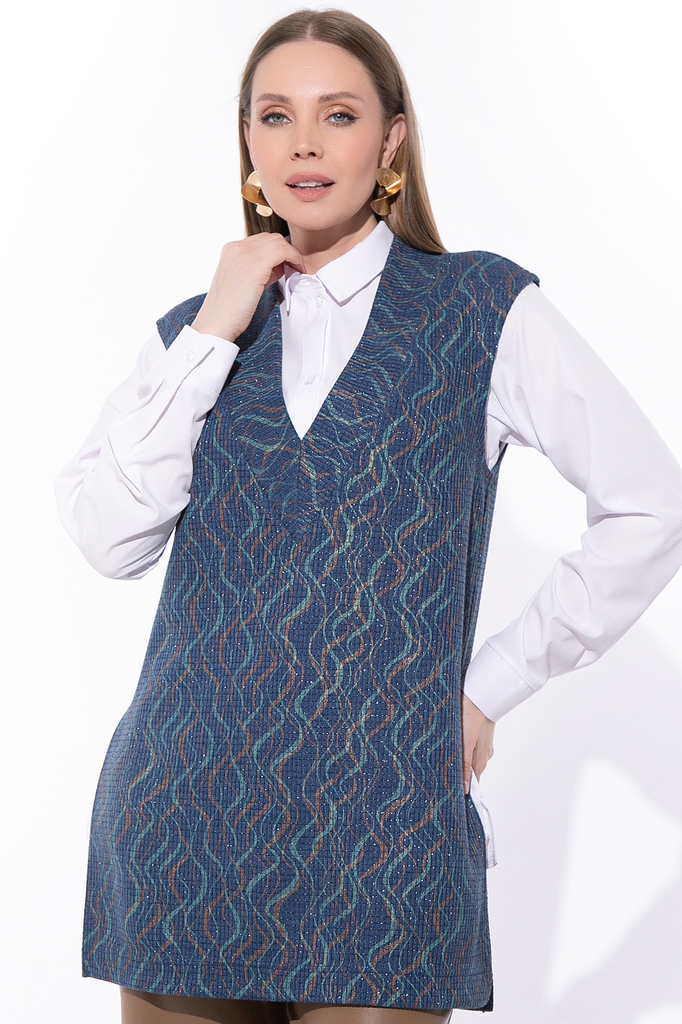 Состав: П/э 65%; вискоза 35%; эластан 10% Описание Жилет “Элли” – это идеальный выбор для стильных и утонченных леди , которые ценят комфорт и качество. Материал: трикотаж Силуэт: свободный Карманы: о... Показать описаниетсутствуют Подкладка: отсутствует Длина: 46-54 р – 61 см Размер изделия на модели: 44 Рост модели: 172 см Параметры модели: 88-63-96