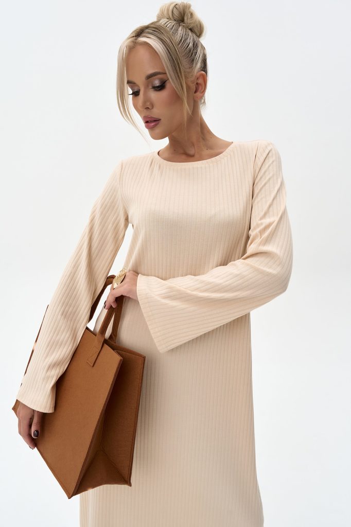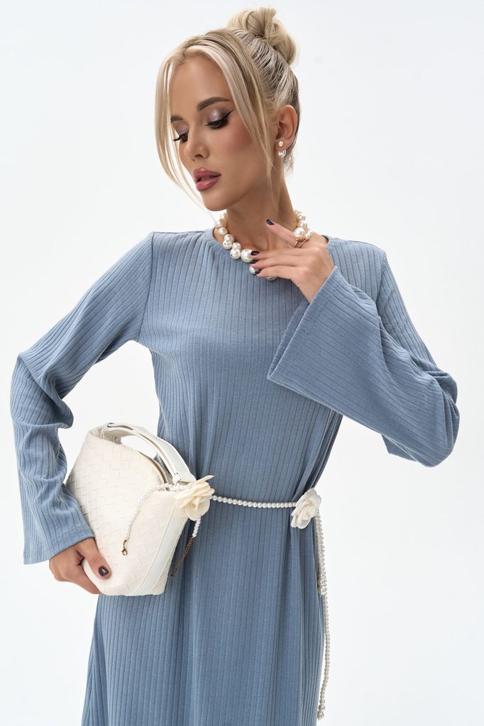 Состав: 55% – вискоза, 45%-п/э, 5%-эластан Описание Выполнено из мягкого, приятного к телу трикотажа — комфортно носить весь день. Фактура «лапша» визуально вытягивает силуэт, делая фигуру стройнее. П... Показать описаниерямой крой с длинным рукавом — универсальная модель для офиса, прогулок и повседневного стиля. Лаконичный дизайн легко дополняется аксессуарами: можно создавать как элегантные, так и расслабленные образы. Оптимальная длина миди — смотрится стильно с обувью на каблуке и с ботинками без него. Два базовых оттенка: нежный бежевый и свежий голубой. Практичная модель на каждый день и для межсезонья. Подходит женщинам разных возрастов и типов фигуры. Легко комбинируется с верхней одеждой и аксессуарами. (пояс в стоимость не входит)