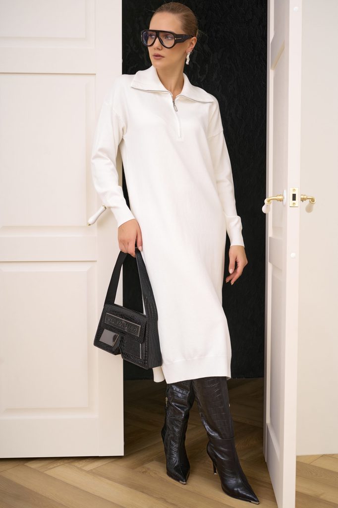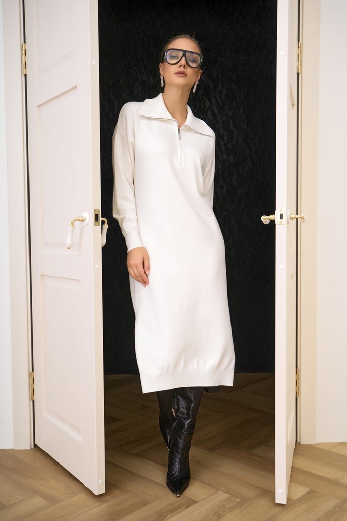 Состав: Шерсть – 70%, п/э – 20, хлопок – 10% Описание Уютное и элегантное платье прямого силуэта из мягкого трикотажа с содержанием шерсти. Теплое, но дышащее, держит форму и не стесняет движений. Уни... Показать описаниеверсальные цвета легко сочетаются с аксессуарами и обувью любого стиля. Длина ниже колена визуально вытягивает силуэт, а лаконичный вырез и длинный рукав делают модель практичной для работы, прогулок и встреч. Минимализм кроя подчеркивает качество материала и дарит безупречный комфорт каждый день. Материал: трикотаж – теплый, мягкий, держит форму. Фактура: вязаный трикотаж, приятный к телу, с аккуратной посадкой. Цвет: универсальный белый, легко комбинируется с аксессуарами. Силуэт: прямой, лаконичный, не сковывает движения. Длина: ниже колена – вытягивает фигуру, делает образ элегантным. Рукава: длинные, комфортные под верхнюю одежду. Вырез: круглый, минималистичный. Стиль: базовый, подходит для офиса, прогулок и повседневных образов.
